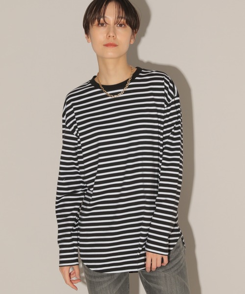 カジュアルコーデの名脇役、シンプルなラウンドヘムロンT。 シンプルなラウンドヘムロンT。 ボーダー2色と無地のオフ1色展開。レイヤードでも1枚でも活躍。 ロングシーズンで着られる綿100素材です。 【スタイリング】 一番の推しはスリーブスリットニットの袖からボーダーを見せるスタイル。 ラクーンカーデのインや、チュールワンピースのインに合わせてみてください。 【素材感】 プレーンな綿の40/2天竺ジャージ ※サンプルにて撮影をしておりますので、 実際の商品とは色味・仕様や加工・サイズ等が若干異なる場合がございます。 予めご了承くださいませ。 お買い物をお得にもっと楽しく!上手な活用方法>>> ▼商品のお気に入り登録▼ 完売カラーの再入荷通知や、ラスト1点の通知、プライスダウンしたセール通知も受け取ることができます。 ▼ブランドのお気に入り登録▼ 新作や再入荷等、いち早くブランドのお得な情報を受け取ることができます。 【ご注意】 ・屋外の光や照明の当たり具合で、実際の商品の色味とカラー別画像の色味に若干の違いが発生する場合がございます。 詳細画像と併せてご確認の上、ご注文いただきますようお願い致します。