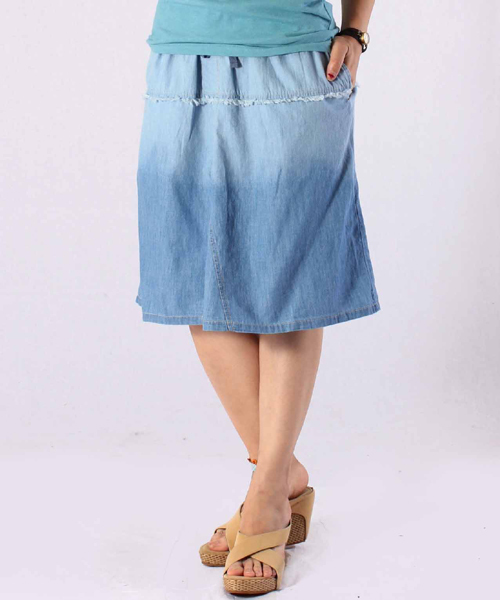 洗いをかけ、やわらかくした薄手デニムの膝丈フレアースカートです。デニムブルーのグラデーションがとてもさわやかです♪ ※こちらの商品は、職人による手作りとなります。 その為、形や色に多少の誤差が生じる場合があります。ご了承ください。 Amina Collection Co.,LTD. エスニック ボヘミアン アジアン フォークロア