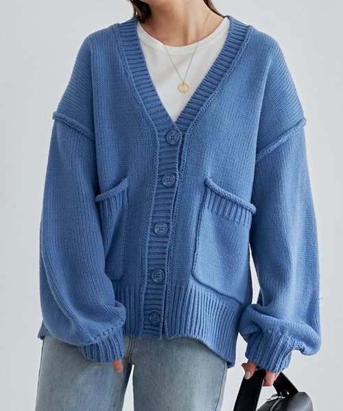 ゆるっとしたボリューム感あるルーズさが可愛いニットカーデ。どんなスタイルにも馴染み、合わせやすいアイテムは様々なシーンで活躍してくれます。目立つ大きめボタンやポケットデザインなどディティールにこだわった主役アイテムです。【素材・サイズ感】程よい厚みのあるミドルゲージニット。ヒップが隠れる長めの丈で体型カバーも叶いつつ、ラフに羽織れるゆったりとしたサイズ感で抜け感あるルーズな着こなしに。ニットとしてもカーデとしても着られ、コーデの幅が広がります◎ウォッシャブルニットなので気にせずがしがし着回せるのも嬉しいポイント。《KOBE LETTUCE ー神戸レタスー》 プチプラレディースファッションからコスメまで、トレンドアイテムを豊富に取り揃えております。 毎シーズン発売されるインフルエンサーとのコラボ商品はSNSでも話題に。