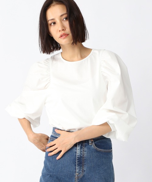 コンパクトな見頃+袖ボリュームが華やかなデザイントップス大胆な袖のボリュームが華やかなデザイントップス。コンパクトな身頃と小さく見せた華奢な肩幅が、より一層袖のボリュームを強調しています。袖口はシャーリングゴムの仕様なので、肘までたくし上げるとバルーン袖にもなります。 【スタイリング】ボトムにインして袖を際立たせるような着こなしがおすすめ。ハイウエストのデニムを合わせたワンランク上のカジュアルスタイルが秋の気分。きれいめパンツとローファーを合わせた、ちょっぴりモードなスタイリングも○【素材感】微光沢のあるコットン・ポリエステル混紡の、シャツ見え超ハイゲージカットソー素材の見頃。袖にはハリのある布帛素材をドッキングしています。※サンプルにて撮影をしておりますので、実際の商品とは色味・仕様や加工・サイズ等が若干異なる場合がございます。予めご了承くださいませ。お買い物をお得にもっと楽しく!上手な活用方法>>>▼商品のお気に入り登録▼完売カラーの再入荷通知や、ラスト1点の通知、プライスダウンしたセール通知も受け取ることができます。▼ブランドのお気に入り登録▼新作や再入荷等、いち早くブランドのお得な情報を受け取ることができます。【ご注意】・屋外の光や照明の当たり具合で、実際の商品の色味とカラー別画像の色味に若干の違いが発生する場合がございます。 詳細画像と併せてご確認の上、ご注文いただきますようお願い致します。