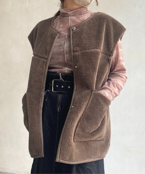 2WAYで使える着回し力抜群のムートン&ボアベスト 柔らかく肌触りの良いボア素材とムートン地のリバーシブルで着用でき、1枚で違った表情のスタイリングを楽しむことができます。 バイカラーの配色がアクセントになり、コーディネートにこなれ感を演出。 保温性もあり軽量で、広めのアームホールが中のトップスを選ばず着膨れしないのでストレスフリーな着心地です。 *********************** 商品の特徴 透け感:なし 裏地:なし(リバーシブル) 伸縮性:なし 光沢感:なし 生地の厚さ:厚い 洗濯・取り扱い 洗濯:家庭での洗濯禁止 クリーニング:ウエットクリーニング禁止 タンブル乾燥:禁止 アイロン:アイロンNG *********************** 【POINT】 ・ゆったりとした身幅&アームホールで着膨れしない ・ほっこり暖かいボア素材が秋冬感を高めてくれるベスト ・リバーシブルで着用できるのでスタイリングの幅が広がる 【COORDINATE】 カラータートルやキャミワンピースに羽織って旬のレイヤードスタイリングがおすすめです。 ニットワンピースでレディライクに。デニムやカーゴパンツでカジュアルダウンも◎ ボアベストにもなるので、ワントーンコーデや淡色コーデのアクセントにもぴったりな優秀アイテムです。 【おすすめのスタイリングアイテム】 マルチウェイ ショート丈カーディガン × ニットワンピースセット(PGL1022309A0001) ベルト付きフリンジステッチスカート(PGL1021501B0003) アソート柄シアーインナー(PGL1022104A0010) 【お買い物をよりお楽しみいただくために】 商品のお気に入り登録(ハートマークをクリック) 完売カラーの再入荷通知や、ラスト1点の通知、セールの通知も受けることができます。 ブランドのお気に入り登録 新商品や再入荷など、いち早くブランドのお得な情報を受け取ることができます。 ※屋外での撮影画像は、光の当たり具合で色味が異なって見える場合があります。商品の色味は、スタジオでの詳細画像をご参照ください。 ※画像の商品はサンプルです。 実際の商品と仕様、加工、サイズが若干異なる場合がございます。 ※ご注文いただいた予約商品のお届け時期の確認は、注文履歴ページより行えます。 ※実際にお届けする商品と仕様やサイズが異なる場合がございます。また生産の都合上、お届け時期が前後する場合がございます。 CPCM(シーピーシーエム) 「Capricious Playful & Curious Message」の略語。 あらゆる文化と関わりながら、自由な(気まぐれな)遊び心で 好奇心をそそるようなメッセージを発信していくブランドです。