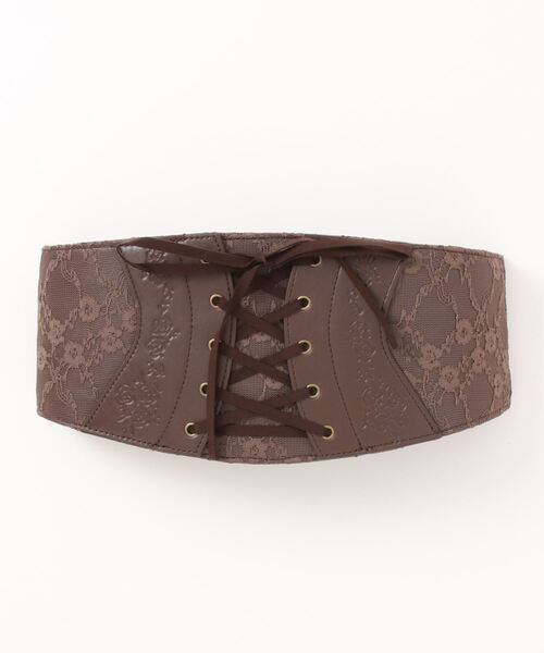 【アイテム説明】 フロントの細やかなレースアップがポイントのゴムベルトです。 サイドには華やかなレース生地を重ね、フェミニンなムードをプラス。キュッと引き締まって見える切替のライン使いでコーデにメリハリを与えてくれます。 スナップボタンで簡単に着脱出来、サイズ調節可能な仕様も嬉しいポイント♪ コルセット感覚で使える太幅ベルトは、axes femmeのクラシカルスタイルにぴったりです。