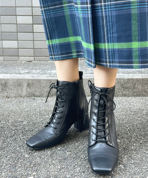 ●SUGARSUGAR COLLECTION● スクエアトゥのレースアップブーツ サイドファスナーで着脱しやすいデザインです 安定感バツグンの太めのヒールで 歩きやすく脚長効果があります。 ---------------------------------------------------------------- 【 スタッフ着用コメント 】 ★ スタッフY(40代前半) ★ 普段サイズ 24.5cm/着用サイズ L 甲高さ :少し低い 足 長 :少し小さい 足 幅 :少し狭い コメント:Lサイズで履けますが、ソックスを履くと ワンサイズUPのLLでちょうど良いかなと 思います。 ★ スタッフS(60代前半) ★ 普段サイズ 23.5cm/着用サイズ M コメント:足先の開放感があります。 甲も圧迫感はありませんし、 着脱しやすいです。 靴紐を緩めなくても履けます。 歩いても足首をこする事はありません。 ※スタッフが実際に着用しました。 ※お客様によってサイズ等の感じ方が異なりますので 参考としてご覧ください。 ---------------------------------------------------------------- 【キーワード】 ドライブ 履きやすい 歩きやすい ママ ママコーデ 母 プレゼント ギフト 20代 30代 40代 50代 60代 アダルト シニア 母娘 親子 デイリーユース パーティ プチプラ デート 買い物 ショッピング 旅行 リゾート 通勤 卒業式 二次会 オケージョン お出かけ おでかけ 高見え ハロウィン ギャル エレガント オフィスカジュアル ガーリー きれいめ ベーシック マニッシュ モード 大人カジュアル ハンサム フェミニン ロック パンク 編み上げ ●商品のお気に入り登録 お気に入りアイテムの完売カラーの再入荷通知や、ラスト1点の通知、 セールの通知も受け取ることができます。 ●ブランドのお気に入り登録💛 新商品や再入荷など、クーポン配布などのお得な情報を受けとることができます。 【注意点】 ※商品画像はご覧になるモニターなどの環境によって若干の誤差があります。 ※サイズはメジャー採寸ですので、多少誤差が生じる場合がございます。 ※商品のデザインや履き方、足型等により、感じ方に個人差があります。 キュートな笑顔が魅力的な女性。 セクシーでスタイルのいい女性…一人ひとりに憧れの女性像が あるように靴にもいろいろなタイプがあります。 ファッションに敏感なすべての女性に贈る、 セクシーエレガンス&キュートカジュアルな靴。