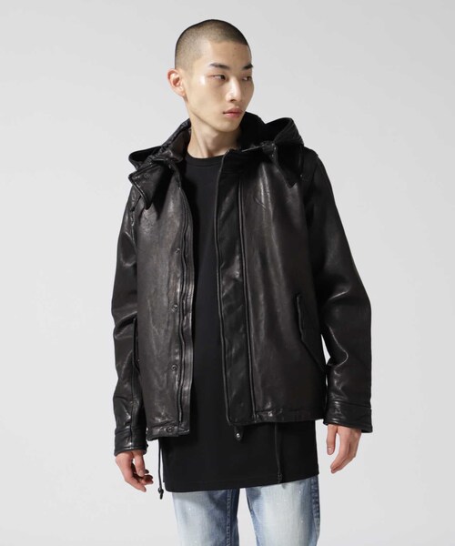 中東原産の羊革に染色の際にベジタブルタンニン薬剤を添加。べジタブルタンニンの特徴として熱、圧力で濃く変色、光沢が増していくという特性があります。製品で水洗い タンブラー加工することにより革が熱、圧力がかかったところの色が深みを増し光沢が増します。それによりヴィンテージ感のある見え方に。シールレザーを使ったシェルパーカーは普段のパーカーよりもカジュアルすぎず合わせられるデザイン。柔らかいので動きやすく、シンプルなデザインなので合わせやすい。シーズンレスで活躍してくれるライダースです。【NCB neat caprice brand/ エヌシービーニートカプリスブランド】NCB neat caprice brand・・・素敵な気まぐれ自分を知る大人に向けたカジュアルアイテムの提案でデザイナーがその時に気になる物を作り、大人の格好良さや余裕という部分を"気まぐれ"という言葉に置き換えて表現しています。