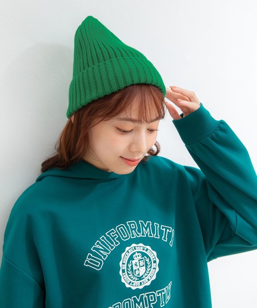 ほっこりあったか♪ 【デザイン】 ワンカラーでシンプルに仕上げたニット帽。 ベーシックカラーからアクセントカラーまで揃えた豊富なバリエーション。 【素材・機能】 伸縮性のある縦目のリブ編み素材。 手洗いでケアできるのもポイント。 【スタイル】 カジュアルにはもちろん、フェミニンスタイルの外しにも◎ ※湿度・摩擦により多少色落ちする可能性があります。 品番:268-127-8005