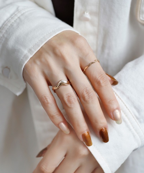 ニュアンス感のあるデザインが手元に抜け感をプラスしてくれるリング。デザイン性がありながらもシンプルなメタルが、デイリーに活躍すること間違いなし。お手持ちのリングと重ね付けするなど、様々なコーディネートが楽しめる優秀アイテムです♪※ATTENTION※■製造・輸送時についた微細なキズや、ゆがみが見られる場合がございます。■リングのサイズや形状には若干の個体差がございます。上記は不良の対象外となりますので、予めご了承くださいませ。■サイズの微調整を繰り返すと金属疲労で破損する場合がございますので、サイズ調整をする際はお取り扱いにご注意ください。