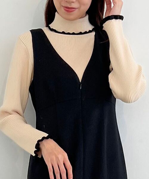 人気の定番タートルがカラーチェンジでリバイバル!着回し力抜群で1枚持っていればどんなスタイリングにも合わせれます。■デザインバイカラーラインのフリル部分がアクセントのタートルニット。もっちりした素材ですが、リブニットなのですっきりして見えるのもうれしいポイント!■サイズ感タイトすぎず緩すぎない程よいシルエットのお作りです。袖部分は少しゆとりのあるデザインになっています。■スタイリングワンピースやジャンスカのインナー合わせのスタイリングはもちろんですが、冬のトレンドのミニボトムとの相性も抜群です◎今年はファーベストとのレイヤードのスタイリングもおすすめです。■スタッフレビュー身長:147cm 着用:Mサイズタートルネックで生地感もしっかりしているので暖かく着ていただけます。シンプルなデザインでフリルがあまり強調されないので甘めを普段着ない方にもオススメです◎身長:162cm 着用:Mサイズもちもちニットは1枚でもインナーとしても着回しできます。しっかりしたニットなので真冬でもお使いいただけます。・・・・・・・・・・・・・・・・・・・・・・透け感:なし裏地:なし伸縮性:あり光沢感:なし生地の厚さ:普通・・・・・・・・・・・・・・・・・・・・・・■商品のお気に入り登録 再入荷通知やのこりわずか、お得なプライスダウンの情報も受け取ることができます。ぜひご登録ください◎