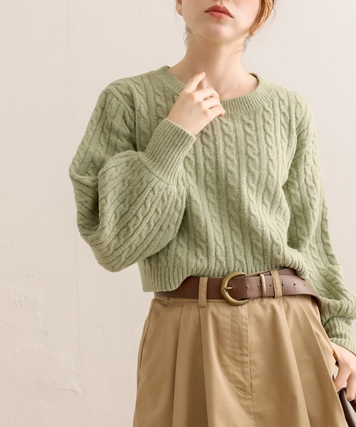 トレンドのケーブル編みが大人可愛いニット︎デザイン・甘めにもカジュアルにも着こなせるケーブルニット。・もちもちした生地感で、肌触りよく着心地も抜群◎・どんなボトムとも合わせやすいクロップド丈。・袖ボリュームシルエットで女性らしい着こなしが叶います。・袖口には、OLIVEのOLのロゴがさりげなく刺繍されてワンポイントに。■カラー・オフホワイト/グリーン/トップグレーの3色展開■スタイリング ・ボトムはミニスカートで甘めな着こなしがおすすめ。・足元はロングブーツやサイドゴアブーツが相性抜群です。・衿つきシャツとレイヤードしてプレッピースタイルも◎-----------------------------裏地:なし光沢感:なし透け感:なし伸縮性:あり-----------------------------model:166cm お取り扱い上の注意※キャンペーンやフェアにより価格が変動する場合がございます。※サンプルで撮影している為、実際の商品と若干仕様が異なる場合がございます。※着用、お取り扱いの際は、商品についている品質表示とアテンションタグを必ずご確認下さい。※ご覧のモニター環境や撮影環境により実際の商品と多少色味が異なって見える場合がございます。ご理解の程よろしくお願いいたします。※引っかけ注意・粗い組織のものや、表面に凹凸があってルーズな組織のもの表面に糸が浮き出ているものは、ちょっとした不注意から引っかけてしまいがちです。取り扱いの際は取り扱い絵表示確認の上、十分注意してください。・着用時にベルトや、バックや周囲の壁など表面の粗いものとの摩擦や引っかかりに注意してください。・水洗いやクリーニングの際にも他の物ものとの引っかかりに注意して下さい。≪返品・交換について≫・着用後、洗濯後の返品・交換は致しかねます。・商品到着後、着用前に商品状態のご確認をお願い致します。登録のおすすめ【気になるアイテムをお気に入り登録】・お気に入り登録した商品はメニューの「♡お気に入り」ボタンから、一覧表示することが出来ます。・完売商品の再入荷やラスト1点の通知、セールの通知を受け取ることが出来ます。パソコン(iPad)の場合・・・「カートに入れる」ボタン横に表示されている「♡」をクリックしてください。スマートフォンの場合・・・商品画像右上に表示されている「♡」をタップしてください。【PALCLOSETアプリのブランドフォロー】・新商品やお得な情報をいち早くcheckする事が出来ます。・スタッフのコーディネートをお楽しみ頂けます。