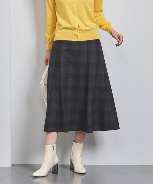 素材感にもこだわった、チェック柄が揺れるフレアスカート ■デザイン ウエストからヒップ下にかけてフィット感をもたせ、裾にかけてフレアに仕上げたややマーメードシルエットのスカート。 身体のラインを拾いすぎない適度なフィット感が魅力です。 ■素材 たて糸にセミ梳毛糸をよこ糸に梳毛糸にポリウレタンを撚糸した、ユナイテッドアローズオリジナルのチェック柄。 梳毛を使用することにより、綺麗な表面感と軽やかさを表現。膨らみと柔らかさも感じられます。 ■コーディネート 動きに合わせて揺らめく裾のデザインを活かし、トップはすっきりとしたニットなどがおすすめ。 カシミヤやモヘヤなどふわふわとした質感のニットを合わせることで、柔らかい雰囲気も演出できます。 #秋服 ============================ 裏地:あり 透け感:なし 伸縮:なし 光沢感:なし ケア方法:ドライクリーニング ポケット有無:なし ============================ 【注意事項】 ※商品を使用前に、タグ等に記載されている「取り扱い上の注意書き」、「洗濯表示」を必ずご確認ください。 ※商品画像は、光の当たり具合やパソコンなどの閲覧環境により、実際の色味と異なって見える場合がございます。予めご了承ください。 ※商品の色味の目安は、商品単体の画像をご参照ください。 ※画像の商品はサンプルです。実際の商品と色味、仕様、加工、サイズ、素材等が若干異なる場合がございます。 店舗へお問い合わせの際は、全国のUNITED ARROWS各店舗まで下記の品名/品番をお申し付け下さい。 品名:〇UBCC CHK SEMI/FLA 74 品番:15241625075