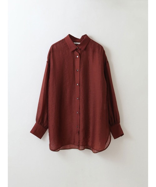 【商品情報】テンセル・ナイロンの透け感のある素材を使用したシャツです。春→夏にかけては軽い羽織ものとして、秋の立ち上がりはシアー感を楽しみ、寒くなって来たら中に薄手のインナーを着て上にニットや羽織を重ねしたりして程よいトレンド感を出すのもおすすめです。薄くて透ける素材ですが着方や工夫で年中使える便利な1枚です。 ※画像の商品はサンプルです。実際の商品と色味、仕様、加工、サイズ、素材等が若干異なる場合がございます。 ※アイテムサイズは商品サンプルを採寸しているため、実際の商品と多少の誤差が生じる場合がございます。 ※末永く愛用頂く為に、アテンションタグ・洗濯ネームを必ずご確認の上、着用又はお取り扱い下さい。