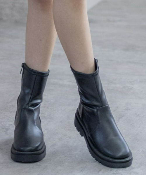 ボリューム感がありつつも、フラットな厚底ソールでオシャレに履きやすい、タンクソールショートブーツです。シンプルなデザインと丸みを帯びたフォルムがポイントで、どんなコーディネートにも合わせやすい万能なアイテムです♪◎ *生産の工程上、アッパーやソールの接合部に接着剤の付着やはみだしが見られる場合がございますが、特性としてご了承くださいませ。 【※お取り扱い上のご注意】 1:モニター環境等により実際の商品と多少色味が異なって表示される場合がございます。予めご了承下さい。 2:屋外で撮影された商品は、天候により多少実際のカラーと異なる場合があります。商品のカラーに参考される場合はトルソー(マネキン)の商品画像をご参照ください。 3:濃い色の商品は、お洗濯や摩擦等による移染にご注意ください。 4:末永くご愛用頂く為に、アテンションタグ・洗濯ネームを必ずご確認の上、着用又はお取り扱い下さい。 5:生産時期により、色、サイズ、デザイン、素材の質感が多少が異なる場合がございます。あらかじめ御了承下さいませ。