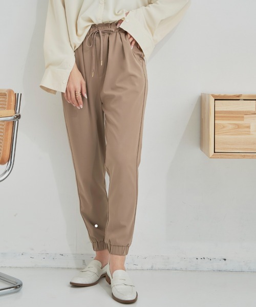 【マットポリエステルジョガーパンツ】 オールシーズン活躍する、きれいめにもカジュアルにも使える万能パンツ。 POINT ・軽くてさらっとした肌触りの素材を使用し、 ・上品な表面感のある素材を使用 ・ウエストは総ゴム仕様で締め付け感のない穿き心地 ・トップスインしても決まる、ウエストリボンデザイン ・サイドの切替えラインが縦を強調し、さらに裾リブですっきり美脚見えも◎ ・しっかりストレッチ性も優れているので動きやすいのも嬉しいポイント COORDINATE きちんと感のあるジャケットと合わせてきれいめスタイルがおすすめ! もちろん、ロゴTシャツやボーダートップスなど カジュアルなコーデにも合わせやすくテイストレス活躍するアイテム。 合わせるアクセサリーやバッグ・足元で印象が変わるので オンオフ問わずデイリーに着用していだけます。 透け感:なし 光沢感:なし 伸縮性:ややあり(ウエスト総ゴム) 裏 地:なし 厚 み:普通 ジョガー/裾リブ/パンツ --------------------------------------------------- ▶商品のお気に入り登録 完売カラーの再入荷通知やラスト1点の通知など お得なプライスダウンの情報も受け取ることができます。 ぜひご登録ください◎ ▶ブランドのお気に入り登録 新商品や再入荷など、ブランドの最新情報を いち早くお知らせします! ぜひご登録ください◎ --------------------------------------------------- ※撮影環境の光や角度により、実物と色味が異なる場合がございます。 また表示のサイズ感も実物とは若干異なる場合もございますので、予めご了承ください。 ※着用、お取り扱いの際は、商品に付いている品質表示を必ずご確認ください。