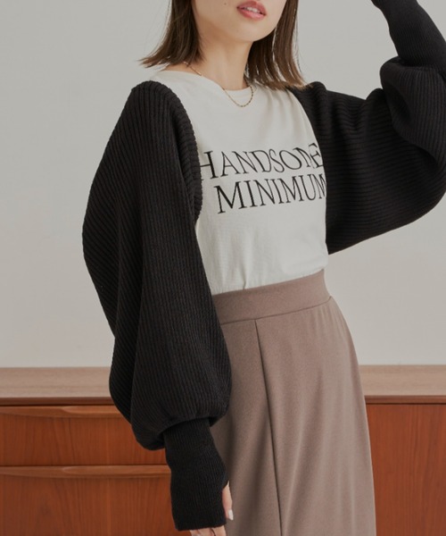 【HANDSOME MINIMUMロゴロングTシャツ】 キャッチ―なロゴデザインがアクセントになった 着回し力抜群のロングスリーブTシャツ。 POINT ・ゆったりシルエットに馴染みの良い大人な配色のロゴがポイント ・深めのサイドスリットですっきり見え◎ ・柔らかく肌馴染みがよく、毎日着たくなるような快適な着心地 ・ロゴ部分にフロッキープリントを施しフェルトのような素材感で立体感のある仕上がりに ・ジャケットやベストのインナーにも合わせやすい万能アイテム COORDINATE 何かと使えるシンプルなロゴトップス。 ジャケットやベスト、カーディガンやワンピースのインナーに合わせて着用もでき、 ゆったりしたサイズ感×サイドスリットで1枚着で着てもサマになるので 重宝すること間違いなし! ホワイト×ブラック・チャコール×ブラックと、 配色なので大人カジュアルな雰囲気に◎ 透け感:ホワイトのみややあり 光沢感:なし 伸縮性:ややあり 裏 地:なし 厚 み:やや薄手 ロゴ/ロゴT/カットソー/Tシャツ --------------------------------------------------- ▶商品のお気に入り登録 完売カラーの再入荷通知やラスト1点の通知など お得なプライスダウンの情報も受け取ることができます。 ぜひご登録ください◎ ▶ブランドのお気に入り登録 新商品や再入荷など、ブランドの最新情報を いち早くお知らせします! ぜひご登録ください◎ --------------------------------------------------- ※撮影環境の光や角度により、実物と色味が異なる場合がございます。 また表示のサイズ感も実物とは若干異なる場合もございますので、予めご了承ください。 ※着用、お取り扱いの際は、商品に付いている品質表示を必ずご確認ください。