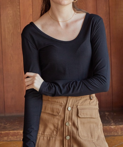 ■デザイン スタンダードなデザインで使い勝手のいいコンパクトロンTです。 シンプルながらも、広く開いた胸元と背中が女性らしい印象に。 裾はサイドカットデザインを施し、ウエストラインをシェイプして見せてくれます。 なめらかな肌触りで着心地も抜群の一枚。 ■素材感 ストレッチ性があり、ラインを拾いやすい為シームレスインナーでの着用を推奨いたします。 ホワイトは透け感があるので、同色やベージュ系のお下着での着用がおすすめです。 ■スタイリング スタンダードな一枚なので、 スカート~パンツ、ショート丈からロング丈まで ボトムスを選ばずにお使いいただけます。 ジャケットやニットのインナーとしても◎ 《お気に入り登録》でお得な情報がいっぱい ・「商品のお気に入り登録」で再入荷通知や、ラストの通知、セール通知も受け取ることができます。 ・「ブランドのお気に入り登録」で新商品や再入荷など、お得な情報を受け取ることができます! ショート丈/クロップド丈/短い/ショート/Tシャツ/ロンT/ロンティー/レディース