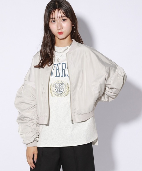 ◆デザイン定番アイテムのMA-1。お袖にシャーリングをプラスし、ジョシっぽい雰囲気に。ショート丈でスタイルアップも叶うデザイン。◆素材袖通りの良いポリエステル素材。少し光沢感がありきれいめな印象。◆スタイリングパンツでカジュアルに合わせるのはもちろん、スカートやワンピースとも相性抜群!ブラックはモノトーン合わせでKギャルスタイルにもマッチ。S 140~150cm M 150~160cm L 160cm~※屋外の光や照明の当たり具合で、実際の商品の色味とカラー別画像の色味に違いが発生する場合がございます。 商品の色味はスタジオ撮影の詳細画像にてご確認ください。なお、商品の色や質感を出来るだけ忠実に再現するよう心掛けておりますが、パソコンなどの環境により、実物と若干異なる場合がございます。▶▶INFORMATION◀◀■商品のお気に入り登録(♡マークをクリック!)完売カラーの再入荷通知やお得なタイムセール通知などを受け取ることができます♪■ブランドのお気に入り登録新商品や再入荷など、ブランドからのおトクな情報を受け取ることができます♪あわせてぜひご登録ください!