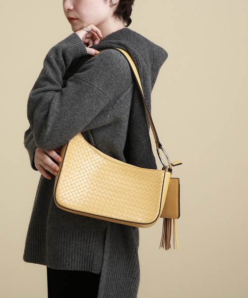 【Oggi 11月号掲載/滝沢カレンさん着用】【デザインポイント】トレンドであるエレガントな印象の長方形バッグに機能性とデザイン性を加えたモードなバッグ。リングには取り外し可能なタッセルとカードケースを備えています。フロント面を柄エンボスやナイロン素材でアクセントを加えています。シーンやスタイルによってカスタム可能なトレンドアイテムです。【スタイリングポイント】エレガントなシーンからデイリー使いまでカスタムによって幅広く使っていただけます。モードなスタイルには、ハンドル持ちや、エレガントなシーンにはリングカスタムを外して肩掛けスタイルも。※ポケット数:内側×1店舗へのお問い合わせ商品番号:127-05112●製品寸法:00(FREE):高さ23cm 幅(上部)28cm 幅(下部)26cm マチ7.5cm 持ち手上がり28cm 付属ショルダー全長93.5cm 付属パスケース全長14cm 付属パスケースH11cm 付属パスケースW7cm 付属チャーム全長23cm モチーフH20cm モチーフW3cm備考:重量:約505g(サンプル重量)