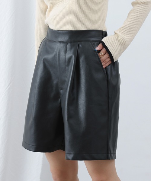 【フェイクレザー素材のショートパンツ】 ミニマルでモードなレザー見えのショート丈パンツ。 軽量で扱いやすいフェイクレザーなので普段使いしやすく、ハード過ぎない印象に。 ウエストは背面部分のみゴム仕様で、ストレスフリーでタックインもキレイにきまります。 様々なコーディネートにマッチするカラー展開なので、デイリーに活躍すること間違いなしです。 ・カジュアルさとモードさを合わせたアイテム ・タック入りですっきりシルエットのハーフパンツ ・シーズンライクなフェイクレザー フェイクレザーシリーズ CWA1022109A0002 フェイクレザーオーバーオールCWA1022102A0002 フェイクレザージョガーパンツ CWA1022202A0005 フェイクレザーショートパンツ CWA1022201A0006 フェイクレザーロングスカート ■素材・洗濯について 本体:合成皮革100% 別布:ポリエステル80%, 綿20% 洗濯:ドライクリーニング ※着用、お取り扱いの際は、商品についている品質表示とアテンションタグを必ずご確認下さい。 ※商品タグに記載されている商品名がWEBでの表記名と異なる場合があります。 ※画像の商品はサンプルです。実際の商品と仕様、加工、サイズが若干異なる場合がございます。 ※照明の関係により、実際よりもやや明るく見える場合がございます。またパソコンなどの環境により、若干製品と画像のカラーが異なる場合もございます。予めご了承くださいませ。 【お気に入り登録】してお得な情報をCHECK!! ・「商品のお気に入り登録」で再入荷通知や、ラストの通知、セール通知も受け取ることができます。 ・「ブランドのお気に入り登録」で新商品や再入荷など、お得な情報を受け取ることができます。