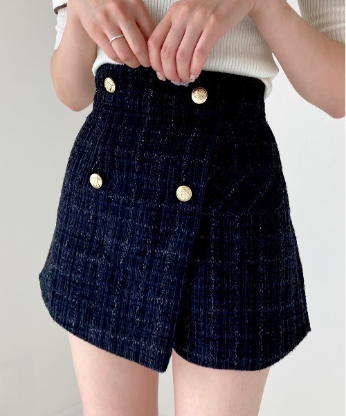 【SELECT LINE】【titty&Co.PETIT Produce by POYO】高級感のあるキラキラツイード生地がとっても華やかなアイテム♪・キラキラのツイード生地にゴールドのボタンをあしらった華やかなショートパンツ。・ハイウエストで脚長効果も抜群◎・トップスの形問わず合わせていただきやすいのもポイントです♪※画像と柄の位置が異なる場合がございます、ご了承下さい。722801005(お問い合わせの際には、左記品番をお伝え下さい。)【商品のお気に入り登録】完売カラーの再入荷や、セール通知などお得な情報を受け取ることができます。ぜひご登録下さい♪