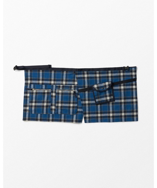 ■「BULLET」製作のエプロンバッグ。肉厚なチェックネル生地を使用したエプロン型のマルチポケットバッグです。生地は起毛後に洗いをかけることで肉厚ながらも柔らかな風合いに仕上げられています。アウトドアにパンクの要素をプラスしたデザインが、コーディネートのポイントととして活躍してくれるアイテムとなっています。