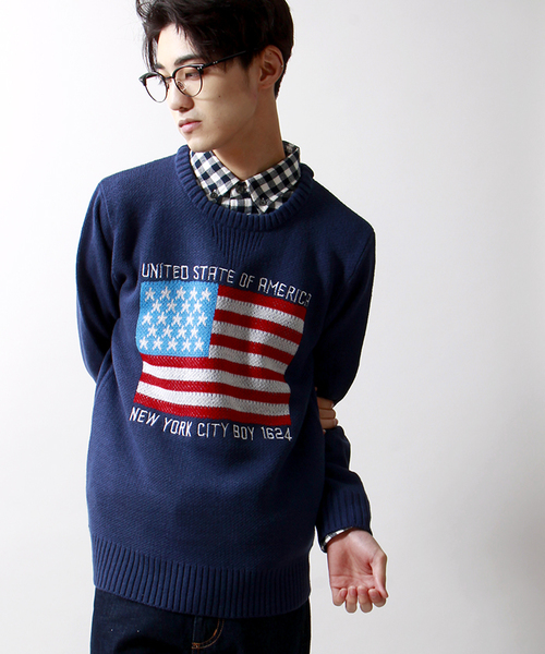 胸元に星条旗をのせたジャガードニット。ざっくりと編み込んだニットは、一枚でカットソーライクに着用頂くのは勿論、シャツとレイヤードしても表情豊かに変化するひと品。一枚で着用頂くのは勿論、インナーとしてのアクセント使いもオススメ。また、男女問わずユニセックスでお使い頂けるので、ご自身用は勿論、プレゼントにもオススメです。 WEGOの特集ページはコチラ