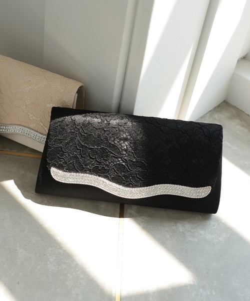 レース×ビジューで華やかさアップ! 持ち運びしやすいパーティーバッグ。 ■point ・ウェーブ型のメタルモチーフで洗練された雰囲気に。 ・程よいサイズ感で持ち運びも便利。 ・そのままクラッチバッグとしても使用可能。 ・付属のチェーンでハンドバッグ、 ショルダーバッグにも。 ■detail ・光沢のあるサテン×レースで上品な印象。 ・程よい厚みでご祝儀、財布、スマートフォンなども 収納可能。 ・内側にはICカードの収まるサイズのポケット付き。 ・留め外しが簡単なマグネットボタン。 ■wearing scene お出かけ ショッピング 誕生日 結婚式 二次会 披露宴 お呼ばれ 成人式 同窓会 女子会 2次会 謝恩会 パーティー デート 演奏会 発表会 入学式 卒業式 司会 お宮参り 七五三 ーーーーーーーーーーーーーーーーーーーーーーーーーー ★お気に入り登録でお得な情報を受け取れます★ ●商品のお気に入り登録 再入荷、ラスト1点、セール通知 ●ブランドのお気に入り登録 新商品、再入荷、おすすめトピックなどショップ独自の情報 ーーーーーーーーーーーーーーーーーーーーーーーーーー ―― kana ―― ドレスを着る日だけでなく 選ぶ時からの一連の体験に価値を見出しています。 ドレスを探すワクワク感、着た瞬間のトキメキ、 一生に一度の特別な瞬間を描くことで 心に残る思い出をお届けします。