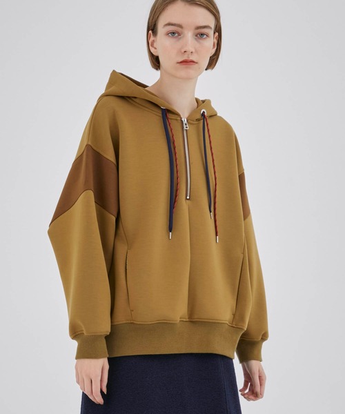 大人女性も着られる!オーバーサイズパーカー■スタッフおすすめポイント・少し光沢のある素材なのでキレイ目にスタイリングできます。・オーバーサイズで腰回りも隠れる丈感です。■デザイナーおすすめポイント・きれいめなダンボール素材を使用することでパーカーでもカジュアルになり過ぎないトップスです。・オーバーサイズでフードのサイズやハーフジップのデザインが顔周りを小さく見せてくれます。■素材・透け感 なし・裏地 なし ・伸縮性 あり■お手入れ方法洗濯可能-------------------------------------------------■■A+TOKYO(エープラストウキョウ)■■東京の感性を基に最高の快適性と機能性で作り上げるTOKYO ACTIVE BRAND。ワークアウト、オフィスなどシーンの垣根がなくなりつつある都市型生活に提案したい、オールメイドインジャパンのウェアが揃っています。A+TOKYO(エープラストウキョウ)では、トレーニング、フィットネス、ヨガ、筋トレ、ワークアウト、ラン、ランニングなどの身近なスポーツから、サッカー、バスケットボール、スケートボート、テニスなど本格的なスポーツに対応できるものまで幅広く取り揃えております。また、普段使いできるカジュアルウェアを取り入れ、オフィスカジュアルやオケージョンなどとシーンレスで着て頂けるアイテムもございます。海外のアスレジャーファッションのような着こなしも可能です。-------------------------------------------------【お買い物をよりお楽しみいただくために】■商品のお気に入り登録(ハートマークをクリック)完売カラーの再入荷通知や、在庫ラスト1点の通知、セールの通知を受け取ることができます。■ブランドのお気に入り登録新商品がUPされたり売り切れ商品が再入荷したときなど、いち早くブランドのお得な情報を受け取ることができます。是非ご利用頂き、お買い物をお楽しみください。