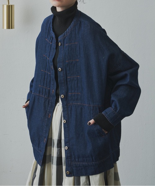 【長い季節活躍するシンプルジャケットも、フロントのピンタックがアクセントに。】 秋のスタイリングに欠かせない軽めのジャケット。 シンプルなデザインのオーバーサイズで、ワンピースやパンツなど様々なコーディネートに合わせられます。 ■styling ・インナーを邪魔しないバンドカラー&筒袖。 襟元はタートルネックニットやフリルの襟、袖口は長めのカットソーやフリルをのぞかせたスタイリングもおススメ。 ・肌寒くなったらニットコーデの羽織として ゆったりとしたオーバーサイズなので、ブラウス+ニットの上からも羽織れます。 《point》 ・ボリュームのあるボトムやロング丈に合う、バランスのとりやすいルーズシルエット ・キレイ目のコーディネートの外しアイテムにもなるちょうどいいカジュアル感 《detail》 ・肩回りをすっきり見せ、ニットを着ても窮屈にならないドロップショルダー ・シンプルな無地のジャケットに映える切り替えデザイン 《fabric》 ・インナーを変えて長い季節楽しめるコットン素材 ・自然の風合いを残した柔らかな印象 …………………… 透け感 : 無し 厚さ:普通 伸縮性:なし 裏地:なし お手入れ方法 お取り扱い上のご注意: ご自宅でお手入れができます。 型崩れを防ぐため、手洗いのうえ形を整えて乾燥させてください。 …………………… ※ご注意※ ・屋外の光や照明の当たり具合で、実際の商品の色味とカラー別画像の色味に若干の違いが発生する場合がございます。 ・詳細画像と併せてご確認の上、ご注文いただきますようお願い致します。 【 Libra Cue 】 “包み込むような気持ちよさを” 快適で豊かな生活を送りたい そんな暮らしの”きっかけ”となるデイリーウェアをご提案します 【 商品のお気に入り登録 】 完売カラーの再入荷通知やラスト1点の通知プライスダウンの通知も受け取ることができます。 【 ブランドのお気に入り登録 】 新商品や再入荷など、ブランドの情報をいち早くお知らせします。 ※ご注文いただいた予約商品のお届け時期確認は、注文履歴ページより行えます。