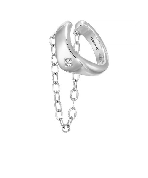 ほどよいボリュームのチェーン付きイヤーカフ。 トレンド感のある横顔が演出できるアイテムで、小さめなサイズながらも主張し過ぎずコーディネートのアクセントに。 きらめくデザインチェーンが動くたびに揺れて、軽やかな印象を与えます。 付属品:ジュエリーケース 【アイテム】 ◆イヤーカフ 耳もとで優しい煌めきを放ち、顔まわりに華やかさを添えます。 【素材】 ◆シルバー 凛とした清らかな輝きが上品な印象に。 【仕様】 【サイズ】縦:約12.0mm 横:約5.3mm 奥行:約12.4mm 《カナル4℃付属品に関して》 お品物はジュエリーケースにセッティングしてお届けいたします。 ショッパーとシールがセットになりますので、ギフトにもご対応いただけます。 ※付属品の仕様は予告なく変更になる場合がございますので、予めご了承ください。