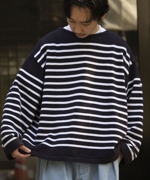 ■トラディショナルなナバルボーダーを、品のあるニットにアップデート 定番のナバルボーダーの雰囲気はそのままに、ニットに置き換えることで品のある雰囲気に仕上がりました。 こなれたオーバーサイズシルエット/ビックシルエットに仕上げた、ドロップショルダーのオーバーサイズニットです。 アームホールや腕幅をルーズに設定して、こなれた雰囲気を演出します。 ネイビーブレザーやチノと合わせるフレンチカジュアルスタイルや、カーゴパンツやモッズコードなどのミリタリーアイテムをMIXするスタイリングがおすすめです。 男女問わず着用いただけるユニセックスアイテムとなっています。 【GLOSTER/グロスター】 『男性であること、女性であること、日本人であること、人間であること。』 自由に生きる為に必要な洋服であり、着る人を主体と考えたプロダクトを提案します。 普遍的な洋服の礎であるワーク・ミリタリーをベースにエッセンスとして艶を加えて形にします。 洋服の原型を生かしながらもひねりの効いた素材を使い、ディテールは歴史の焼き増しではなく新たな価値観を創造します。 ※お取扱い上のご注意 アテンションタグを必ずご確認の上、着用又はお取り扱いください。 ※店頭及び屋外での撮影画像は、光の当たり具合で色味が違って見える場合があります。 ※商品画像に関しては出来る限り忠実に表示出来るよう努めておりますが、お客様がご利用のモニターの設定及び特性により、実際の商品と比較し色味に若干の誤差が生じる場合があります。 ※画像の商品はサンプルとなりますので実際の商品と仕様、加工、サイズが若干異なる場合がございます。 ◇商品のお気に入り登録◇ 【お気に入りに登録】を是非ご活用ください。 再入荷の通知や、ラスト1点の通知、セールの通知がいち早く届きます。 ◇ブランドのお気に入り登録◇ 新商品や再入荷など、いち早くブランドのお得情報が届きます。