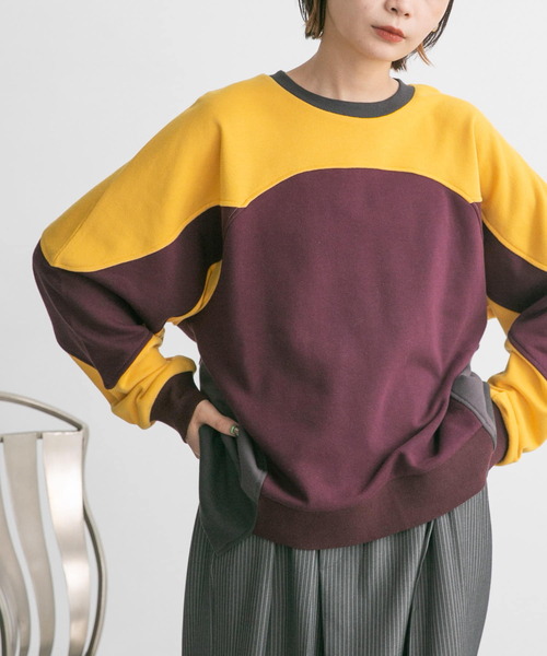 【定番に差を付けた、着映え抜群のデザインスウェット】 異なるカラーリングがドッキングされたスウェットが登場。メンズライクなシルエットと存在感抜群のデザイン性で、定番スタイリングに差を付ける1着です。裾のカッティングがすっきりした印象を与え、ボトムとのバランスを取りやすいのも魅力的。スタイリングに取り入れやすい定番のGRAY、奥行きのある新鮮カラーのBORDEAUXの2色をご用意しました。 POINT ・ぱっと目を惹くデザイン性 ・好バランスな着こなしを叶える着丈 ・デイリーに着やすいゆったりシルエット COORDINATE バランスの取りやすい着丈は、幅広いボトムと好相性。今年らしくショートパンツで合わせたり、あえてレディライクなスカートを合わせてハズしとして着こなしても◎ ※商品画像は、光の当たり具合やパソコンなどの閲覧環境により、実際の色味と異なって見える場合がございます。予めご了承ください。 ※商品の色味の目安は、商品単体の画像をご参照ください。 ▼お気に入り登録のおすすめ▼ お気に入り登録商品は、マイページにて現在の価格情報や在庫状況の確認が可能です。 お買い物リストの管理に是非ご利用下さい。 ----------------------------- 透け感:なし 伸縮性:ややあり 裏地:なし 光沢:なし ポケット:なし -----------------------------
