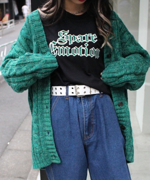2022 秋冬アイテム ランダムな色合いのメランジ糸で仕上げた表情のあるニットカーディガン。 ざっくりとしたナチュラルなケーブル編みがあたたかみのある雰囲気です。 ボディラインを拾わない、落ち感のあるビッグシルエットで大人のこなれ感を演出。 深めのVネックが顔周りをすっきりと見せてくれます。 やわらかな肌触りのニットなので着心地も快適。 ・ニット製品で生地が伸びやすいため、サイズに若干の誤差が生じる場合がございます。予めご了承くださいませ。 【以下パープル参考。カラーにより多少の誤差あり】 ・透け感:やや透ける ・伸縮性:あり ・生地の厚さ:普通 ・裏地:なし