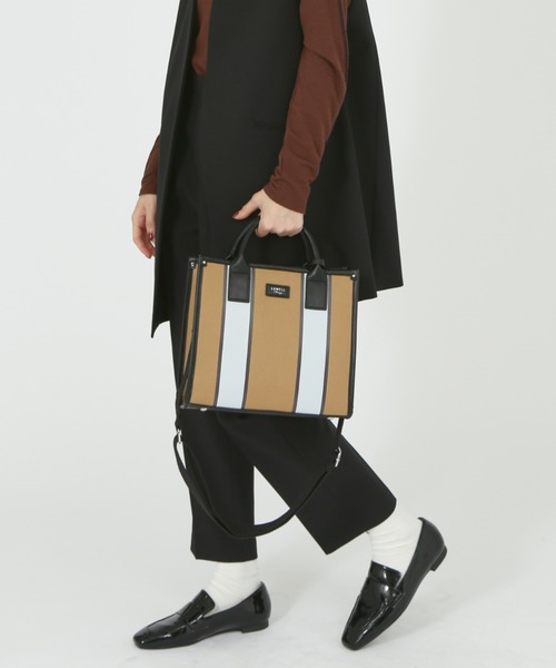 2WAYで使えるトレンドファブリックバッグ 【Design】 ラインデザインがポイントのファブリックトート。 ヴィンテージライクなファブリック素材と、ベーシックなカラーリングBAGベース×ラインのバイカラ―の組み合わせが今年っぽい雰囲気を演出。 ファブリックならではの個性と気軽な気分を楽しめるアイテムです。 【Detail】 スタイリングの幅が広がる2WAY仕様。 取り外し可能な附属のショルダー紐を取り付ければ、ショルダーバッグとしてもお使いいただけます。 【pocket】 外側:なし 内側 前胴:ジップポケット×1