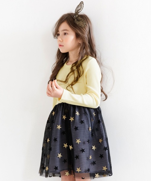 総柄のチュール素材に薄手のリブ地をドッキングしたワンピース。 1枚でゴージャスな装い♪ スカート部分は裏地付きです。