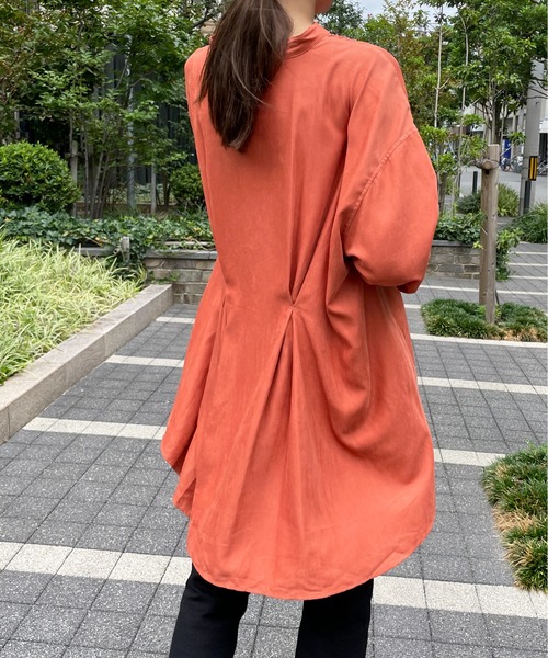 【StyleSea】芦屋発ブランド「スタイルシー」。シンプルで気負いのないシルエット、リラックススタイルで、流行に左右されないタイムレスなデザイン。着心地に拘り、リラックスと都会的な間を楽しむ、女性らしさを忘れないライフスタイルブランド。Autumn Collection■バックタックが光るチュニックシャツオーバーサイズでおしりが隠れる長さのスタンドカラーのシャツブラウス。後ろのバックタックのおかげでややAラインになり、ウエストラインがきれいに見えるデザインです。さらりとしていて透けにくい生地感もポイントです。■気になる「ヒップ」「二の腕」「ウエスト」をカバーややゆったりしたオーバーサイズシルエットと長めの着丈が気になるおしりやウエストをさりげなくカバー。細身のテーパードパンツやスラックスを合わせることでスタイルアップを実現。■体型カバーポイント【二の腕】【ウエスト】【ヒップ】【デコルテ】【スタイリング】・スリット入りデニムやロングタイトスカートなどと相性がよく、様々なコーデに組み立てできるアイテムです。・ファーブルゾンやボア、ムートンコートなどのボリュームアウターやトレンドのミリタリーベストとのレイヤードでメリハリのあるコーデに。・シンプルなワイドパンツやスラックスパンツと合わせてオフィスカジュアルスタイルにもオススメです。・ロングジレやフィッシングベストを合わせてこなれ感のあるスタイルに。・バラクラバとあわせて旬の韓国トレンドファッションにも◎・バケットハットなどの小物、スクエアバッグや鍵編みバッグやスマホショルダー、足元はニーハイブーツ、ロングブーツやショートブーツ、トレンドのサイドゴアブーツ、スニーカーやパンプス、ブーティなど、小物次第で、自由にムードチェンジができるので、飽きがこず長くご愛用いただけます。・ルームウェアやワンマイルウェアとしてはもちろん、これから旅行やレジャーにも使えるアイテムです。大人ガーリー/大人カジュアル/秋冬ブラウス/レディース/プチプラ/スタイリッシュ/大人フェミニン/カジュアルコーデ/モード系/モードカジュアル/オフィスカジュアル/ロングスリーブ/長袖――――――――――――――――――【生地】――透け感:なし厚さ:薄め伸縮性:なし――――――― ―――お取り扱い上のご注意―――[色味・サイズについて]ご覧のモニター環境や撮影環境(光の照射や角度)により、実際の商品と多少色味が異なって見える場合がございます。また商品画像はサンプルのため、稀にサイズ変更がある場合がございます。予めご了承くださいませ。[シワについて]発送上の状態によって商品がシワになる場合がございます。[においについて]密封状態で入庫し、検品時に再度袋詰めを行っておりますが、素材により染料等の臭いが若干残っている場合がございます。使用していくと臭いが抜けていくのでご安心下さいませ。[柄物アイテムについて]・全ての柄のつなぎ目は合っておりません。・生地の裁断にて、柄の出方が1点1点異なります。※柄のご指定は出来かねます。[色落ちについて]商品により色落ち・色移りがある場合がございます。品質表示を必ずご確認のうえ、着用、お洗濯、保管をお願い致します。《『♡』マークを押してお気に入り登録でお得な情報がたくさんゲット♡》―――――商品のお気に入り登録―――――★ラスト1点のお知らせ ★再入荷 ★セール ★クーポン対象 ★お気に入りの商品コーディネートなど様々な通知をお知らせいたします。――――ブランドのお気に入り登録――――『♡』マークを押してお気に入り登録をすると【新作商品】【再販商品】など、お得な情報を受け取ることができます♪是非ともお気に入り登録をお願い致します。