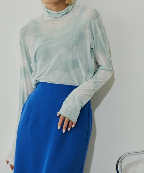 ◆伸縮性に優れた素材で着心地抜群 シアー感がコーディネートに抜け感をプラスするタートルトップス POINT メッシュ生地のシアー感がコーディネートに抜け感をプラスするタートルトップス。 程よくタイトなシルエットで女性らしい着こなしに。 直接肌に触れてもストレスのない柔らかい生地で仕上げられているため着心地も抜群。 レイヤードのインナーとしても重宝する1枚。 COORDINATE ややコンパクトなシルエットなので、ボリュームのあるシルエットのボトムを合わせるとこなれ感のあるメリハリコーデが完成○ コーディネートのメインとして1枚での着用はもちろん、Tシャツはベスト、シャツなどにレイヤードしたスタイリングもおすすめです。 秋冬シーズンはニットやスウェットからちらりと覗かせたスタイリングも♪ 透け感:あり 光沢感:なし 伸縮性:あり 裏 地:なし 厚 み:薄手 シアー/メッシュ/タートルネック/長袖 --------------------------------------------------- ▶商品のお気に入り登録 完売カラーの再入荷通知やラスト1点の通知など お得なプライスダウンの情報も受け取ることができます。 ぜひご登録ください◎ ▶ブランドのお気に入り登録 新商品や再入荷など、ブランドの最新情報を いち早くお知らせします! ぜひご登録ください♪ --------------------------------------------------- ※撮影環境の光や角度により、実物と色味が異なる場合がございます。 また表示のサイズ感も実物とは若干異なる場合もございますので、予めご了承ください。 ※着用、お取り扱いの際は、商品に付いている品質表示を必ずご確認ください。