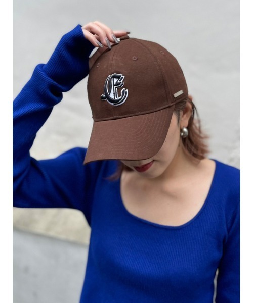 ENVYM定番のEをモチーフにしたロゴキャップ。ロゴを大きくしてポイントになるようにしました。今季トレンドのブラウンをカラー展開で取り入れました。