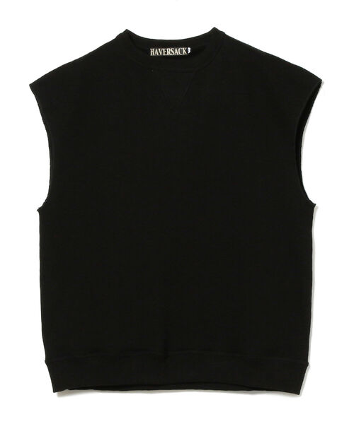 重ね着を楽しむ!着心地の良いベスト スエットシャツの袖をカットオフした仕様でデザインされたベスト。 希少な旧式編み機「アズマ編み機」を使用したヘビーウェイトの裏起毛裏毛生地で仕立てられ 10970年代ごろの初期の編み機の1つで、編むスピードは非常にゆっくりで1日1反~2反程度、そのため膨らみのある柔らかな肌触りの良い生地感が特徴。シャツやTシャツに合わせて、様々なレイヤードスタイルを楽しめるアイテムです。 HAVERSACK 男の普遍的要素を持つミリタリー、ユニフォーム、テーラードといったカテゴリーの中で、時代が生んだ知恵とディテールに満ちたヴィンテージの火を消さないためそれらを現代に継承、さらに新しい火をおこすことにこだわり続けるブランドです。ヴィンテージウェアにインスパイアされながらも新しい時代の眼を見つめ両者を融合させた、タイムレスな服作りを目指しています。