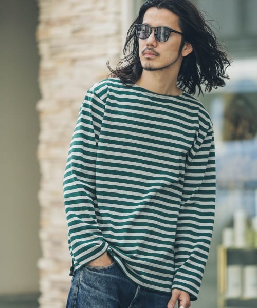 大人のカジュアルスタイルを後押ししてくれる、バスクボーダーのロングスリーブTシャツトレンドのバスクボーダーTEEを秋冬に着易い配色でご用意しました。綿100%のさらりとした軽さのある天竺生地は、環境に配慮した"ECO RICH"を使用。ほどよくゆとりのあるサイジングで、こなれた印象で着ていただけます。【ECO RICH/エコリッチ】環境に優しい100%アップサイクルの裁断くずから生まれた糸。原料のわたは、縫製工場で不要になったコットンとポリエステルの裁断くずや、不要になった生地を使用しています。染料を必要とせず、もとの色を、そのまま活かした環境にやさしい100%アップサイクル糸です。-----------------------------《スタッフ着用コメント》《 年齢:30代前半/身長:169cm/体重:66キロ/着用:M》ジャストサイズで着るならMサイズ、ややゆったりと着るならLサイズ。標準的なサイズ感で、着回し力は抜群です。-----------------------------※この商品は素材の特性上、ふしやネップ(部分的に太くなっている)や、異原糸(色糸)が見られる場合があります。素材の特性としてあらかじめご了承ください。※商品画像は、光の当たり具合やパソコンなどの閲覧環境により、実際の色味と異なって見える場合がございます。予めご了承ください。※商品の色味の目安は、商品単体の画像をご参照ください。素材感透け感 : ややあり(OFF部分のみ)伸縮性 : あり裏地 : なし光沢 : なしポケット : なし▼お気に入り登録のおすすめ▼お気に入り登録商品は、マイページにて現在の価格情報や在庫状況の確認が可能です。お買い物リストの管理に是非ご利用下さい。