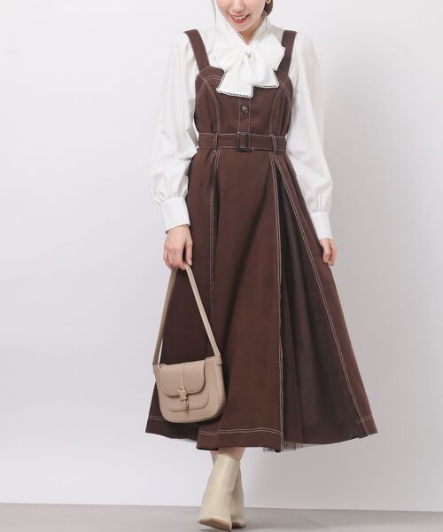 さりげなくチュールがのぞく大人可愛いジャンスカワンピ 動くたびにチュールがのぞく贅沢なジャンパースカート。 インバーテッドプリーツの内側にチュールを重ねてふわっと広がるたびに見え隠れするこだわりのデザインになっています。 トップはコンパクトに、スカートはたっぷりフレアーのメリハリのあるシルエット。 共布のベルトがスタイルアップに一役かってくれます。 さりげないステッチ使いでスタイリングをフェミニンな印象に。 マットな風合いのフェイクスウェードがシーズンライクなコーデを演出します。 甘すぎず、大人カワイイを叶えてくれる1枚。 ※再入荷の場合、生産時期が異なるため色・素材・サイズ・デザイン等多少異なる場合がございますので予めご了承ください。 裏地なし 伸縮性なし 薄手 肩紐調節可(後ろ2段階) 背中部分ゴム仕様 ベルト付き(ベルトループあり) 胸ボタンはフェイクです 縫い始めや縫い終わりにステッチが重なっている場合もございますので予めご了承ください 洗濯:手洗い可 ▼お気に入り登録でお得がいっぱい▼ ~商品をお気に入り登録~ 再入荷・ラスト1点・セールの通知を受け取ることができます! ~ブランドをお気に入り登録~ 《rps》の新商品・再入荷情報をいち早くお届け!