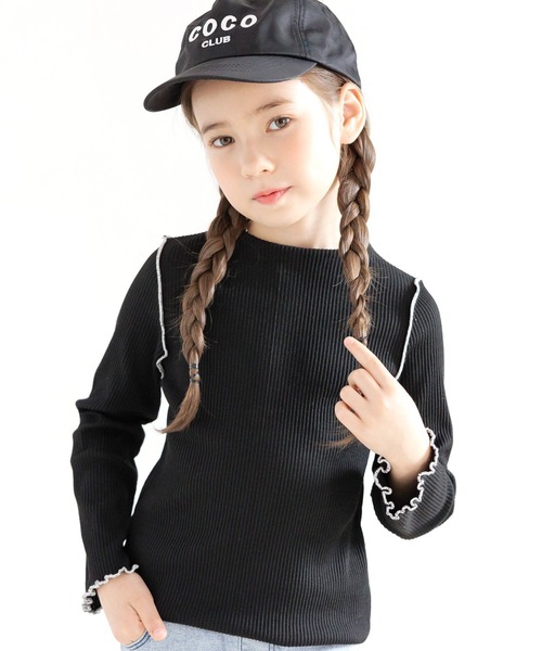 伸縮性のあるリブ素材の長袖トップス★首元までしっかり生地があり程よい厚みで秋冬に最適◎