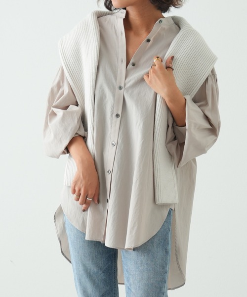 ■たっぷりとしたボリュームスリーブが目をひく、スタンドカラーブラウス。 きちんと見えとリラックス感を兼ね備えた、一枚でさまになるアイテムです。 ■日本製のテンセルと綿の混紡生地で、ハリはありつつほどよい落ち感があり、快適な着心地。 インナーとしてベストやざっくりニット、ジレと合わせたレイヤードスタイルもおすすめです。 ■バンドカラーデザインで、シャツよりもコンサバすぎず、柔らかな抜け感のある印象。 袖のボリュームとヒップラインが隠れる丈感で、体をスッキリ見せてくれる効果も◎ ■シンプルで飽きのこないデザインなので、オンオフ問わずオフィスなどでも着用可能。 春になったら一枚着として、羽織として、一年を通して活躍してくれます。 ------------------------------------------------ 透け感:ホワイトのみややあり 裏地:なし 伸縮性:なし 光沢感:なし 生地の厚さ:普通 ------------------------------------------------ ▼♡をクリックでお得な情報をお知らせいたします! 気になる商品のお好きなカラーやサイズをお気に入りに登録していただくと、 完売商品の再入荷やラスト1点の通知、セール開始時にお知らせをいたします。 ▼OUVRAGE CLASSE(ウヴラージュクラス)をお気に入りブランドに登録 新商品や予約、クーポン配布、セールなど、ブランド最新情報をお知らせいたします。 ぜひご活用いただき、お買い物をお楽しみくださいませ!