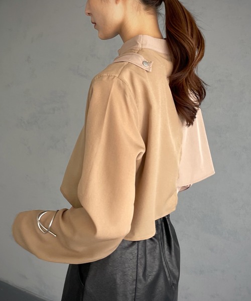 ケープ風のボリュームで華やかに魅せるブラウスケープをイメージした二枚重ねのデザインが今年らしいブラウス。ディテールにシルバーボタンを施し、&g'aime(アンジェム)らしいモード感をプラスしました。落ち感のある柔らかい布帛素材で身頃部分はすっきりとシンプルに仕上げました。トップスインでケープ部分が見えるよう設定しました。アウトでルーズな雰囲気で着用しても上にケープデザインあることでバランスよく着用いただけます。スカートともパンツとも合わせやすく、幅広いコーディネートに活躍してくれます。------------------------------------------------------透け感/なし光沢感/なし伸縮性/なし 厚 み/★☆☆☆☆------------------------------------------------------【お買い物を楽しんで頂く為に】■商品のお気に入り登録お気に入りの登録をして頂きますと完売カラーの再入荷通知や、ラスト1点の通知を受け取ることができます。■ブランドのお気に入り登録新商品の発売や再入荷、タイムセールやクーポン発行のお知らせなど&g'aimeがお届けするお得な情報を受け取ることができます。