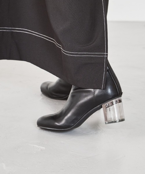 シンプルなデザインながらも、アッパーの色味に合わせたクリアヒールを組み合わせ、後ろ姿も抜かりないショートブーツ。センターに切替を入れたアッパーデザインや、ストレッチ素材のタイトめな筒周りで華奢見えも叶えてくれる優れもの。 女性らしい丸みのあるラウンドトゥがどんなコーディネートにも合わせやすく、太めのヒールで長時間履いても疲れにくい安定の履き心地。 ★《お気に入り登録》でお得な情報をGET★ ・「商品のお気に入り登録」で再入荷通知やラスト1の通知、セールやクーポンの通知も受け取ることができます!→ハートマークをクリック ・「ブランドのお気に入り登録」で新商品や再入荷など、お得な情報を受け取ることができます! ★サイズ展開★ S M L LL 22.0 22.5 23.0 23.5 24.0 24.5 25.0 25.5 26.0