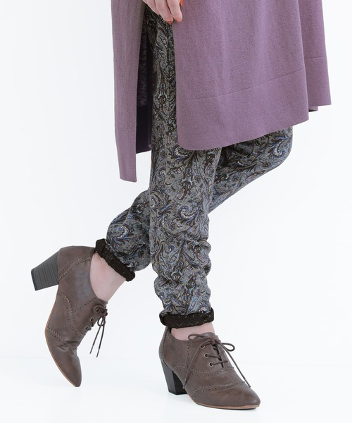 『異素材の組み合わせで、お洒落に映える。』 ロールアップしたときに見えるレースがセンスを高めるペイズリー柄レギパン♪ コットン混でストレッチの効いたカットソー生地を使用し、体にフィットしすぎない程よいゆるっと感だから穿き心地抜群。 裾部分には幾何学柄のようなレース生地を使用し、甘すぎない大人印象に仕上げました。 さらに、選べて嬉しいM~3Lサイズ展開♪ 今、好きな物、興味あることを自由な発想で表現できる≪ n'OrLABEL ≫。 「実用性と機能性、そして遊び感覚」、多面性を楽しめるピュアでモードなデザインライン。 こなれ感漂うお洒落が完成する≪n'OrLABEL≫裾裏レースペイズリー柄レギパンです。