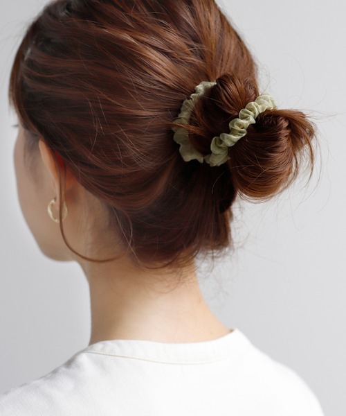 くしゅっとしたスリムなシルエットで、うしろ姿にこなれた印象をプラスしてくれるシュシュ。 煌めくシアー素材が髪色に馴染みつつ、軽やかな雰囲気に導きます。 ※ATTENTION※ ■製造・輸送時についた微細なキズや、ほつれ、繊維の飛び出しが見られる場合がございます。 ■シュシュのサイズ・形状には個体差がございます。 ■シアー素材のため、中のゴムが透けて見える仕様となっております。 ■【ピンク】と【ベージュ】のみ、中のゴムにラメが入っております。 ■再入荷時期によりロゴプレートのデザインが異なる場合がございます。 上記は不良の対象外となりますので、予めご了承くださいませ。 ■繊細な素材となりますので、引っかかりなどによる破損にご注意ください。 ■お届けするプライスタグや、カート名には【BE/ベージュ】と記載がありますが、実物は写真のようにグリーンのような色味です。