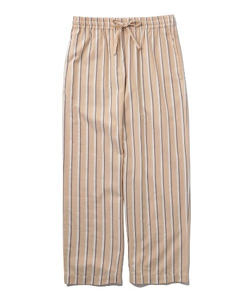 【EAMESコラボ・ミッドセンチュリーな色合いのストライプロングパンツ】 【Fabric】 環境に優しいリサイクルコットンを一部使用した、コットン100%のストライプ生地を使用しています。 【Design/Styling】 インテリアブランド『EAMES』とのコラボから生まれた、ミッドセンチュリーデザイン好きにはたまらないルームウェア・コレクション。『EAMES』を代表するカラフルなスツールに溶け込むような、温かみのある配色でデザインしたストライプパジャマです。ゆったりと幅を持たせたストレートのシルエットで、リラックス感あふれるおうちスタイルが完成。色は明るいイエローとさわやかなブルーで、LADIESでも色違いのお揃いをご用意しました。同柄のパンツとセットアップでお使いいただけます。インテリアの一部のようにお部屋を彩るルームウエアで特別なおうち時間をお楽しみください。 ※照明の関係により、実際よりも色味が違って見える場合があります。 またパソコン・スマートフォンなどの環境により、若干製品と画像のカラーが異なる場合もございます。予めご了承ください。 商品の色味は、商品単品画像をご参照下さい。 ※商品画像はサンプルのため、色味やサイズ等の仕様に変更がある場合がございますので、予めご了承ください。