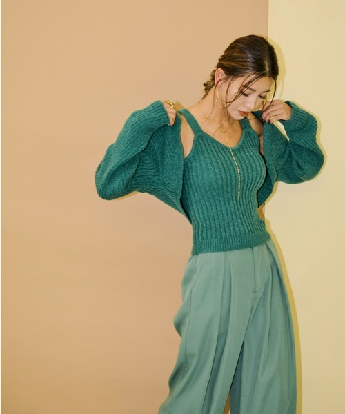 2022 Fall Collection ─ ─ ─ ─ ─ ─ ─ ─ ─ ─ ─ ─ ワイドリブの編地とアームボレロがトレンドライクなセットアイテム。 ふわふわな肌触りで女性らしい印象に。 ●単品使いも可能なうれしいセットアイテム。 ●定番で使いやすいブラックと抜け感のあるくすみグリーンの2色展開。 ●ビスチェはシアートップスやリブトップスの上にレイヤードするのもおすすめです。 ビスチェ:身巾33,着丈47 公式インスタグラム【aic_official】 ZOZOに掲載してない身長別コーデや入荷情報など随時更新しております!! 是非チェックしてみてください!! ※掲載画像の商品の色味は、屋外や屋内の光の照射や角度により実物と色味が異なる場合がございます。 また表示のサイズ感と実物は若干異なる場合もございますので、予めご了承ください。 ※着用、お取り扱いの際は、商品についている品質表示とアテンションタグを必ずご確認下さい。 お出かけ/デート/秋服/秋コーデ/AWコーデ/ニットキャミ/トレンドコーデ