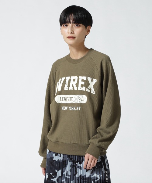 古着っぽい雰囲気に仕上げたミニワッフルトップス☆ 着心地の良いミニワッフルのTシャツに、カレッジロゴをプリントしたキャッチーなトップス。ロゴをかすれたようなプリント手法にすることで、古着っぽいこなれた雰囲気に仕上がっています。 程よくゆったりとしたシルエットで、コーディネートに取り入れやすいアイテムです。 【AVIREX Belle】 本格的なミリタリーウェアが持つ機能性とデザインをレディースカジュアルに投影したライン。 個性的かつ時代性のあるレディースブランドとして聡明、自由、好奇心、凛として快活な 働く大人の女性へ向けたレディスカジュアルを提案しています。 ■お使いのパソコンのモニターによって、実物商品とカラーが異なって 見える場合があります。誠に申し訳ございませんが、ご理解下さいます様お願いいたします。 ■当ショップの在庫数は 直営店舗の商品も含まれています。在庫数が日々変動する為、ご注文頂いた時点で在庫が完売になっている場合がございます。 ■サイズ表は、製品の生地や織りなどの特性により、多少の誤差はございます。予めご了承ください。 【お買いものをお楽しみいただく為に!】 ▼商品のお気に入り登録 完売カラーの再入荷通知や、 ラスト1点の通知、セールの通知も受け取ることができます。 ▼ブランドのお気に入り登録 新商品や再入荷など、 いち早くブランドのお得な情報を受け取ることができます。