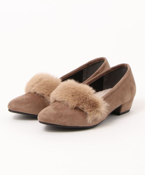 ボリュームがあって柔らかな質感のファーが可愛い印象のBalancoireのパンプス【商品仕様】スエード素材特有のビロードのような落ち着いていて品のある色合いでファーが程よくポイントになっています。アーモンドトゥのつま先のかたちが少しきりっとしして、どんなコーデにもマッチしてくれます。インクッションがふかふかで柔らかく、中綿も入っているので履きごこち抜群です。ソールは日常的なご使用の中では滑りにくい材質になっています。【ご試着の感想インタビュー】普段のご使用は23.0~23.5cmのかたMサイズでご試着。履いたばかりの時は窮屈で上のサイズじゃないとだめだなと感じた。少し歩くとじわっと緩くなって窮屈ではなくなった。靴下履いてはきつい。これなら上のサイズがいい(靴下を履くなら)中敷きが柔らかいし全体的にあたる感覚はソフトであったかい。