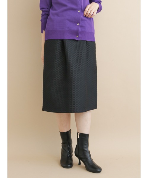 ジャカード織りで上品エレガントな印象に仕上げたタイトスカート。Iラインですっきりと品良くスタイリングできるのも魅力のひとつ。後ろゴム仕様で安心感があるのも嬉しいです。シックなカラーでコーディネートにも品良く馴染み、オンオフ問わずに活躍してくれるアイテム。※商品画像は、撮影環境やお客様のご利用のPC・スマートフォンのモニター環境などにより実物と色味に差異がある場合がございます。★《お気に入り登録》でお得な情報をGET★① 商品ページ内のハートマークをクリック!② 以下通知が受け取れます!「再入荷」「ラスト1点」「特別セール」etc..\ブランド、ショップのお気に入りも是非!/
